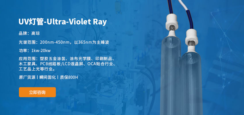 公司擁有完整的產業生態鏈并形成了如下產品系列:UV燈(高壓、中壓)汞燈與鎵燈系列,UV變頻節能電子電源系列、UV-LED成套照射光源系列、UVLED光固化設備系列、UV成套系統系列、UV機械系列、UV輔助材料配件等系列。